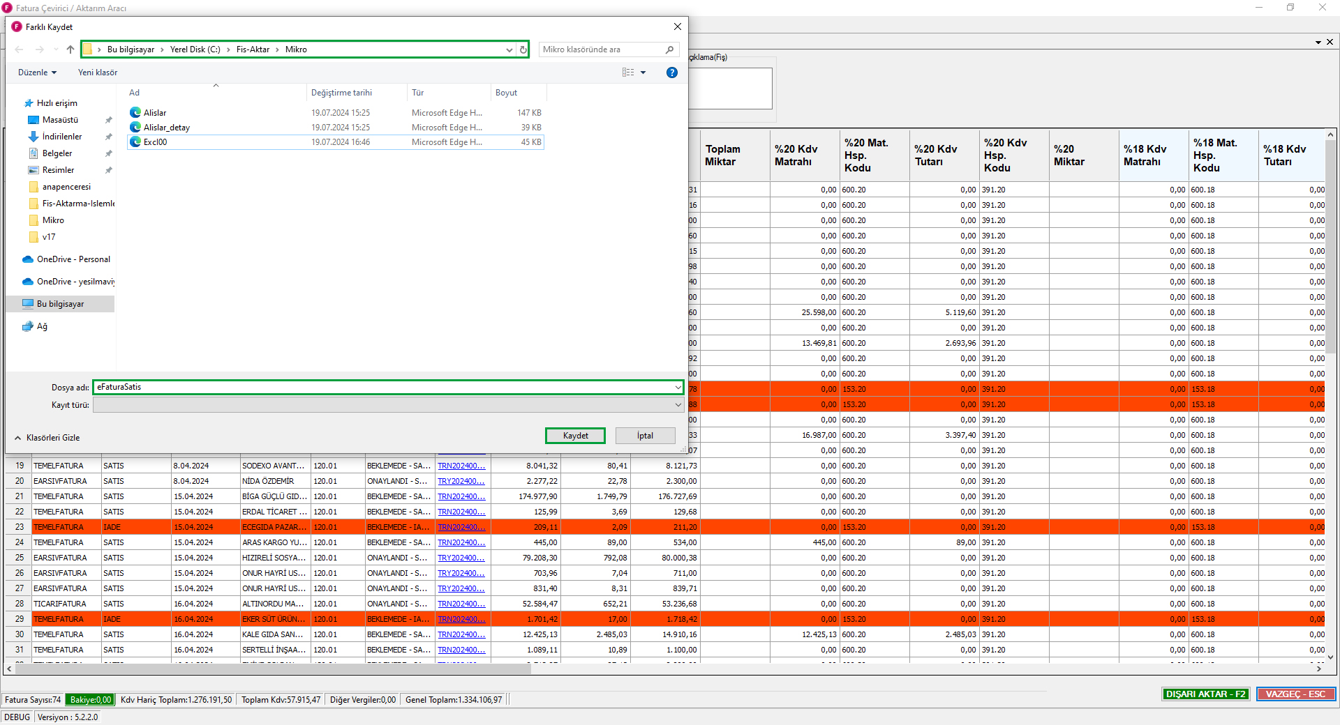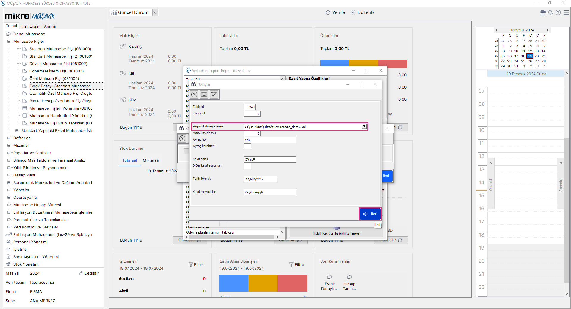 Fiş Aktarma Aşamaları Mikro V17