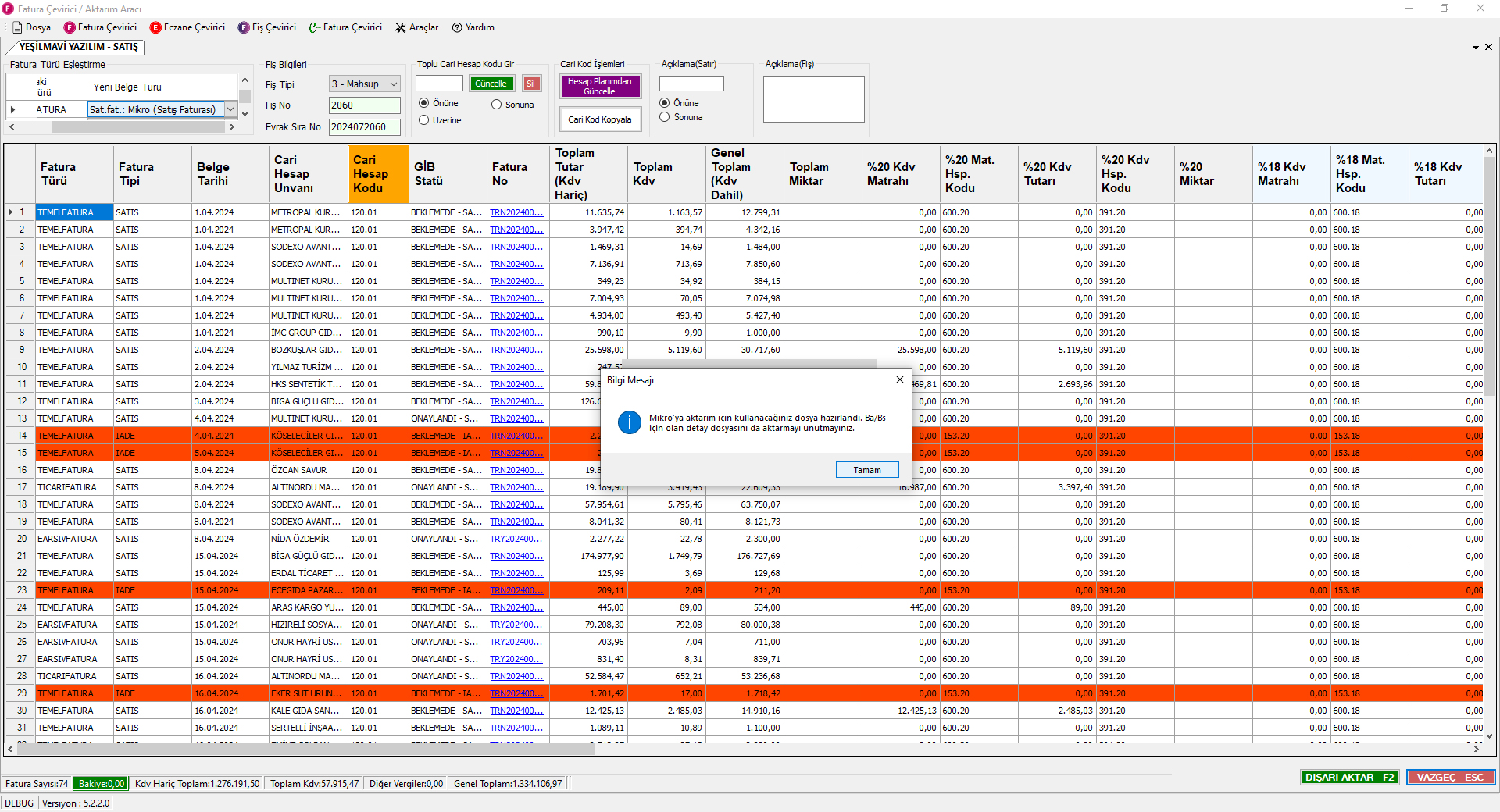 Fiş Aktarma Aşamaları Mikro V16